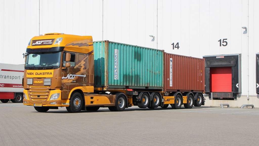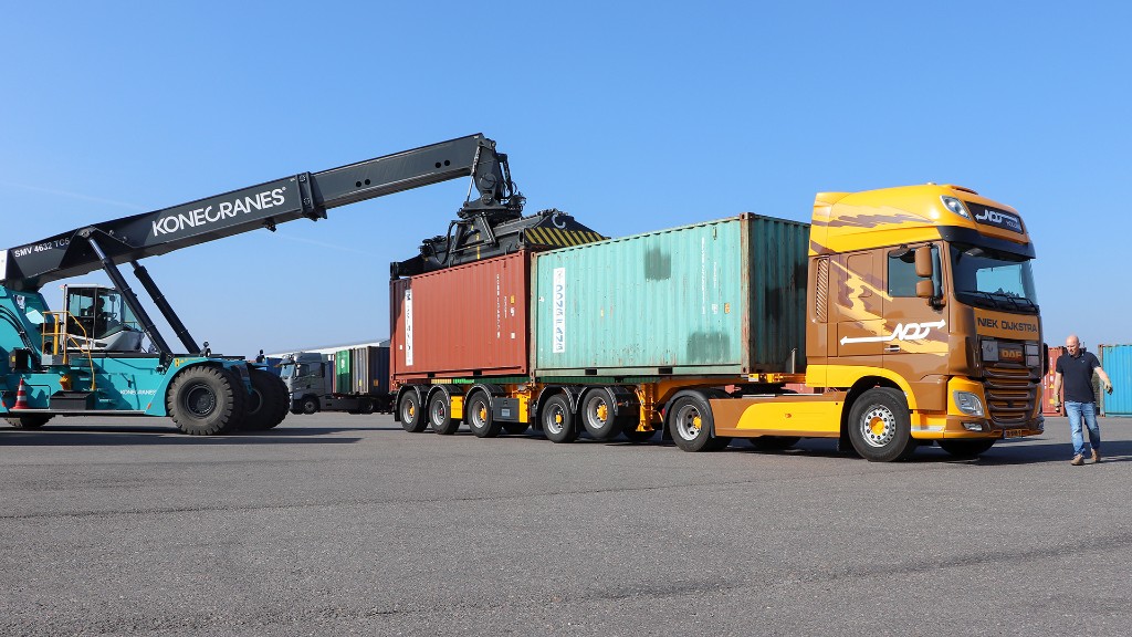The 2CONnect container chassis is ideal for transporting two 20FT containers because the chassis can be divided into two parts. With this, two containers can be loaded or unloaded at the dock simultaneously. Also, 40 or even 45FT containers can be transported on this chassis. This makes the Broshuis 2CONnect chassis very flexible in its use, something that fits perfectly with the work of Niek Dijkstra from Heerenveen.