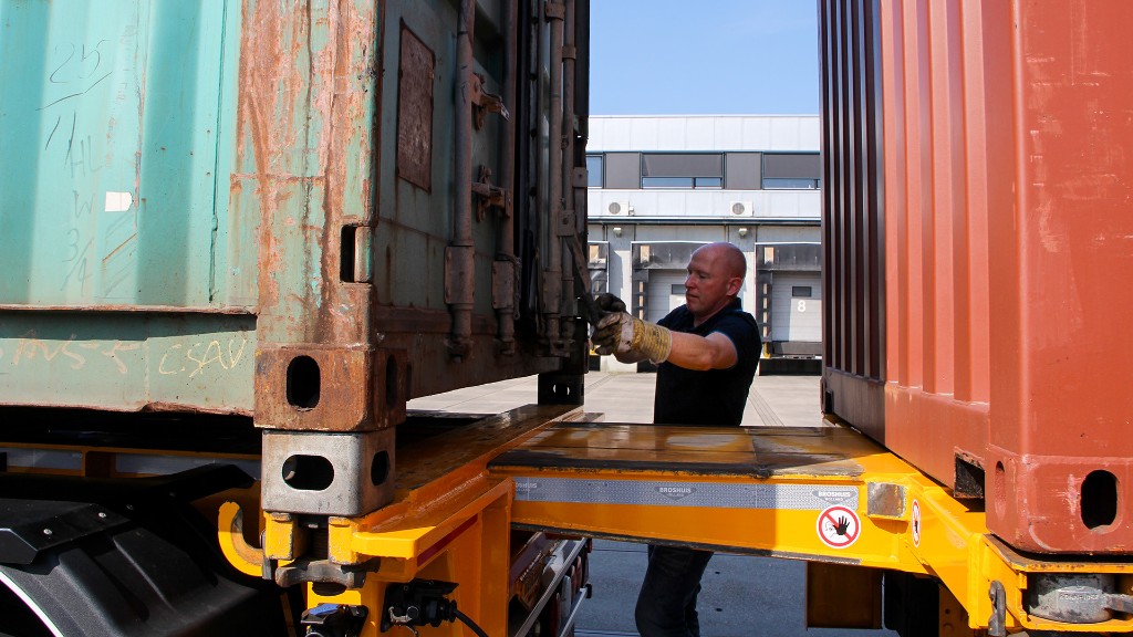 Specialized container transporter, Niek Dijkstra Transport from Heerenveen, deploys two Broshuis 2CONnect container chassis. Regular driver Patrick van Dijk enjoys working with these connectable chassis.
