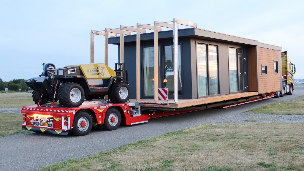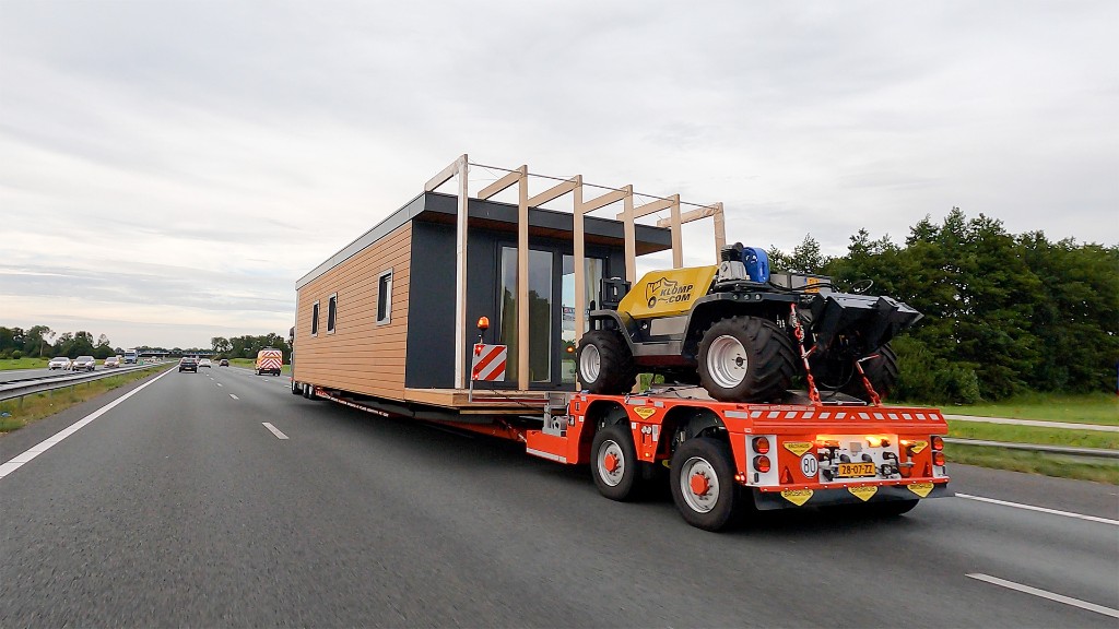 Besides transporting the chalet, mobile homes, bungalows and tiny houses, it is also often the carrier's job to place and position the chalets. Tight camping sites are often inaccessible for the entire combination. As a result, bringing a tractor on the low loader to put the load in place is often crucial.