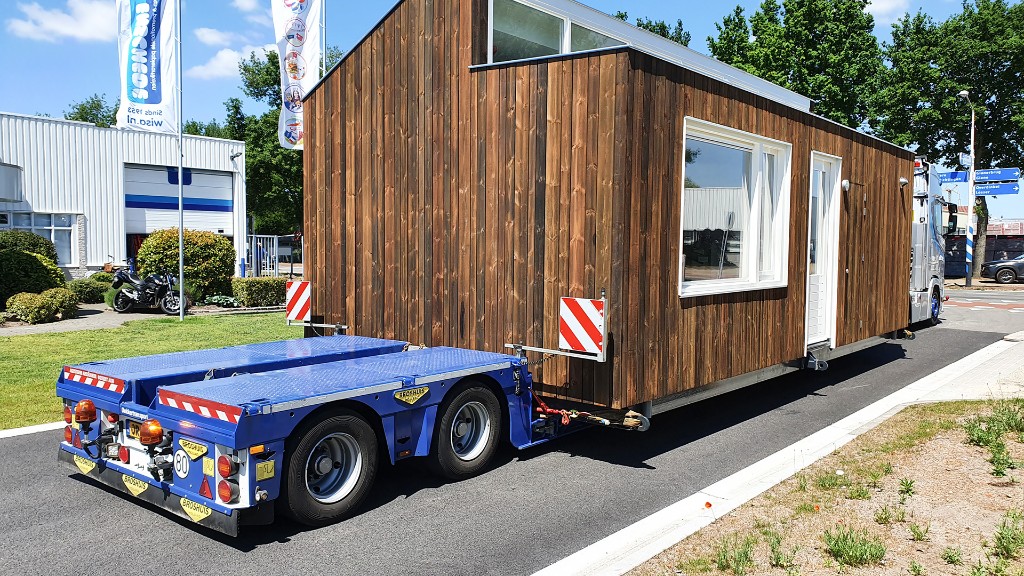 Transporting chalets, caravans, mobile homes, bungalows and tiny houses requires a specific approach within special transport. The dimensions of chalets and mobile homes are only getting higher, wider and longer. Together with renowned transporters and builders of chalets, we have developed the ideal trailers for this work so that their products reach their destination safely and undamaged.