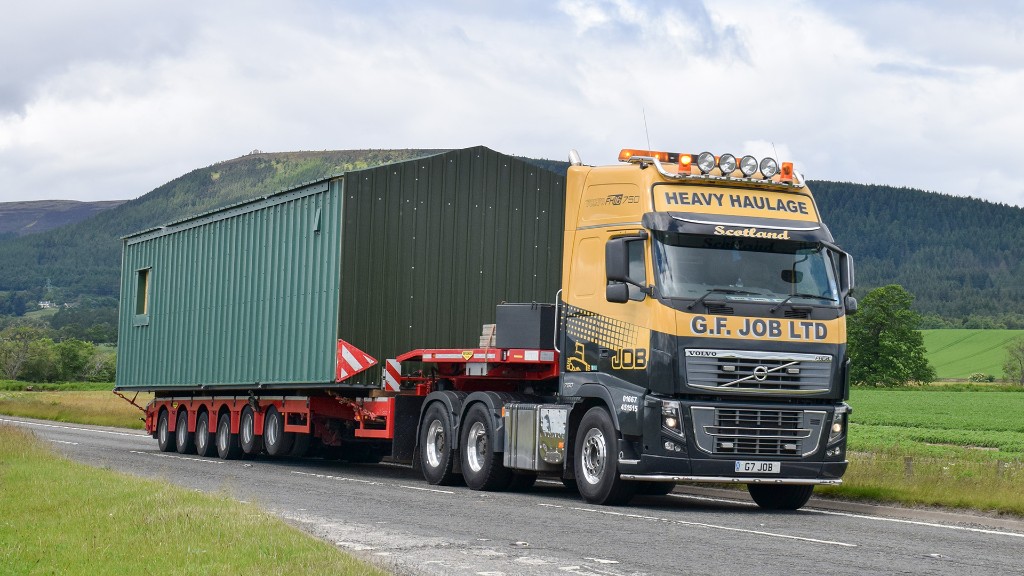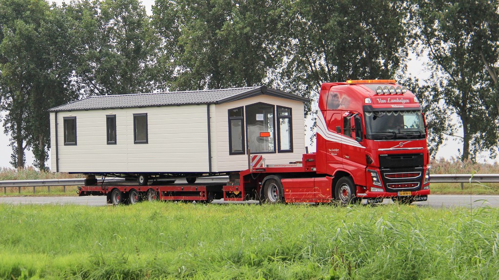 The primary need for carriers is for the chalet to fit in or on the low loader. The length, weight and height of the load play a crucial role here. Thus, the lower-height chalets can be transported on our low semi low loaders that are equipped with an ECO ramp, among other things, and the higher chalets can be transported in our extremely manoeuvrable and low low loaders.