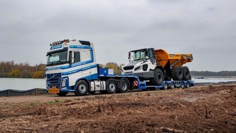 “When purchasing the trailers, nothing was left to chance" says Mark Schoones (director-owner).“The trailers have been fully thought out so that they can be used in a multifunctional way. With a double wheel well and crane arm recess we can transport almost any machine up to 40 tons ourselves. This is essential in our work because we don't always know what needs to be transported the next day.” In addition, three identical semi-trailers have been chosen due to the “Baugleich” authority for the German exemption.