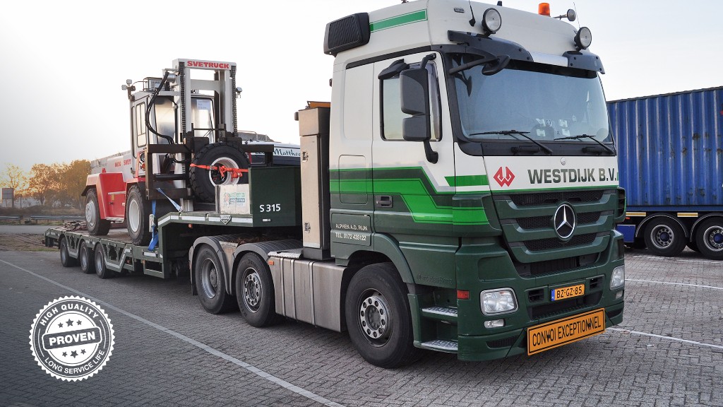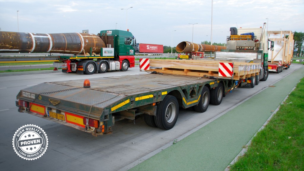 "In 1999, we picked up this self-tracking semi low loader in Kampen and it still drives all over Europe on a daily basis" says Mels Sijpkes (Westdijk Exceptioneel Transport BV). "After just over 25 years of solid service, this trailer will retire from our fleet and enter the second-hand market. We have ordered 10 new semi low loaders from Broshuis that will replace the older models."