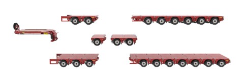 The different components of our 100T Range provide for modular possibilities: the neck, dolly, axle bogie and the various options such as a spacer, additional beam and FLEX axle are linkable by default. This linkability also makes it easy to generate additional prestressment. Our 100T Range on pendulum axles consists of the single and double extendable 8-axle (2+6) and 10-axle (3+7) semi low loader. If required, these are of course also available in other configurations. With our FLEX axle(s), you can make the following configurations: 2+6; 2+1+6; 2+2+6; 3+7; 3+1+7; 3+2+7. Please contact one of our advisers for more information.