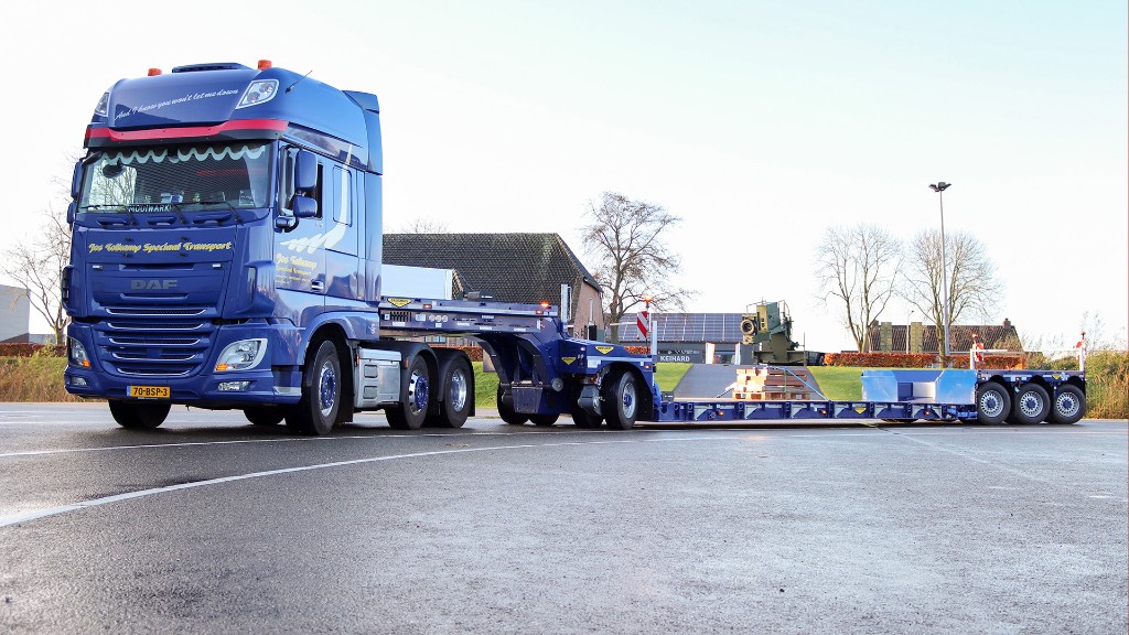 The low loader itself is characterised by its low tare weight. The secret and biggest advantage lies in the axle set. According to Jos Tolkamp, the 600mm stroke of the axle assembly combined with the extra-wide crane arm recess, coupling capability and fully radio-controlled operation combine all the advantages. "The high level of finish really amazed me".