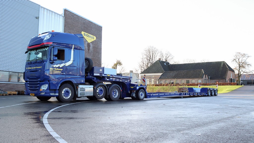 This new low loader is the second new Broshuis trailer this year. In addition to a hydraulically steered 3-axle semi low loader earlier this year, it is now the turn for a new pendulum axle low loader.