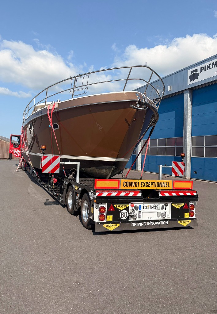 That prompted the next step: a new Broshuis low loader. “To be able to transport larger boats in the future, we decided to invest in a trailer with outer beams, allowing for lower loading height. We also opted for independent wheel suspension (SL2) and additional features like screw anchor points,” Timo says. By working together on the implementation of screw anchor points, Timo Mücke was able to easily apply his own self-developed supports for yacht transport. This clearly demonstrates what we at Broshuis stand for: thinking along with the customer, delivering custom solutions, and designed with everyday work in mind.