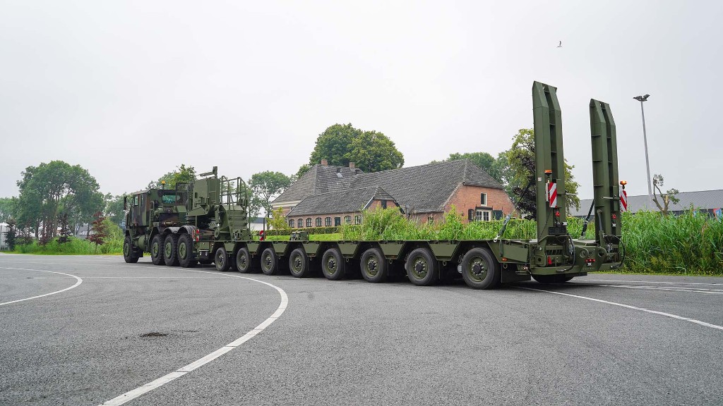 In total, the Kampen-based family business took just under 2 years to complete this order. 170 tank transporters - built as 8-axle pendle axle semi low loaders - were ordered in the summer of 2019 following a period of highly extensive testing. Two prototypes were tested to the limit in America, and Broshuis came out as the winner of the test and was awarded the contract for the delivery of 170 trailers. Immediately after the order was placed, Broshuis set up a special defense line where these trailers were built.