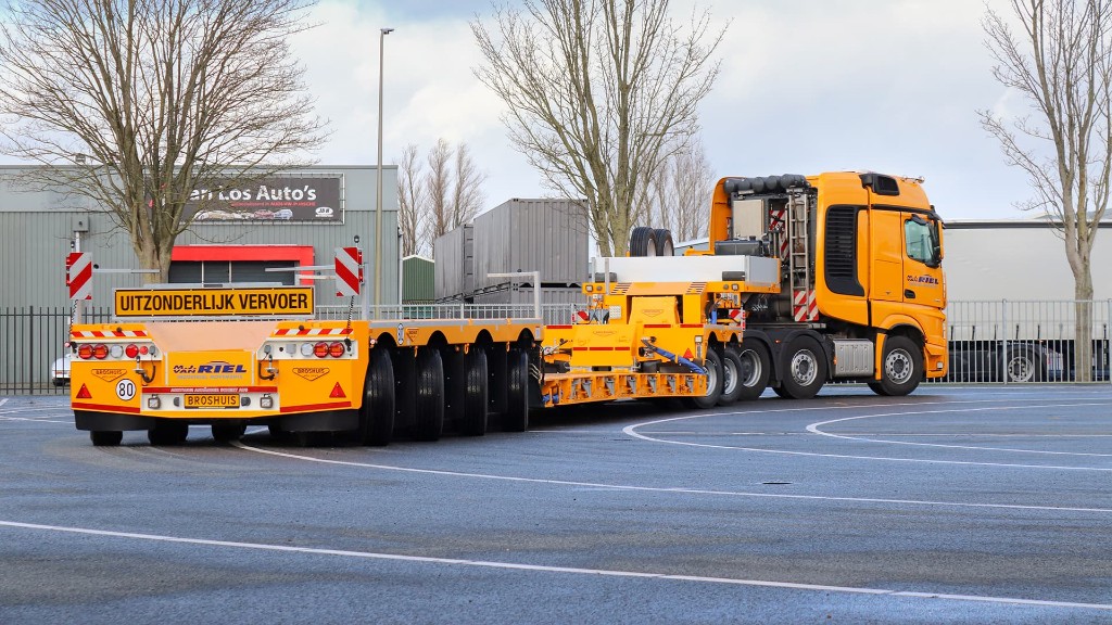 The latest addition to the already large fleet of M.J van Riel from Tilburg is a Broshuis 2 + 4 PL2 pendle axle low-loader. Last week the impressive low loader was collected from Kampen.