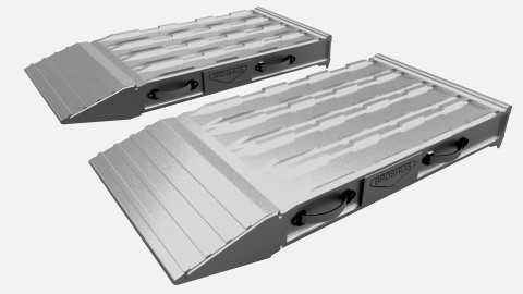 With a slope of only 8 degrees, it is easiest to drive on and off with all types of cargo with these ramps. Consider loading and unloading forklifts, small elevating work platforms and reach trucks. These ramps are also width-adjustable, and a boom well/crane arm fits exactly between the ramps.