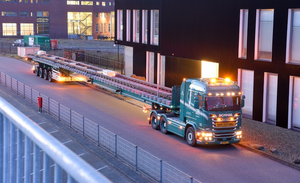 This one is not much heavier than the non-extendable variant, but it is more flexible. The single extendible trailer is often used for concrete elements, steel structures and wooden structures.