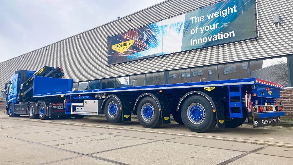 “Broshuis dacht met ons mee en liet aan de hand van een tekening van onze kraantrekker zien, dat de trailer perfect aangekoppeld kan worden met voldoende vrijloop en ideale aslastverdeling,” vertelt Marco de Kreek (eigenaar). “Met deze nieuwe uitschuifbare vlakke oplegger kunnen wij onze klanten in bouwmaterialen verhuur (steigers, compressoren, aggregaten etc.), petrochemie en scheepvaart (zoals fenders) uitstekend bedienen.”