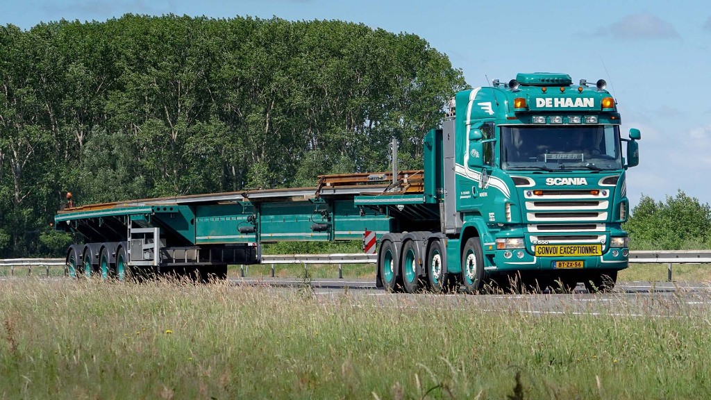 This triple trailer can reach a length of no less than 36 meters. And is therefore often used when really extreme lengths have to be transported.Three times extendable flat trailer, hydraulically controlled