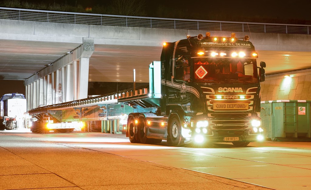 A flat trailer that can be extended three times it is also called a triple trailer. Because this flat trailer can reach a length of no less than 36 meters, this flat trailer is often used when really extreme lengths have to be transported. With the hydraulic steering and the use of remote control, this length can still be used to unload at hard to reach (construction) places. The robustness, sturdiness and quality of this trailer are characteristics that we hear from users in response.