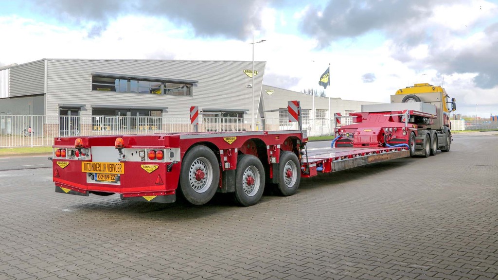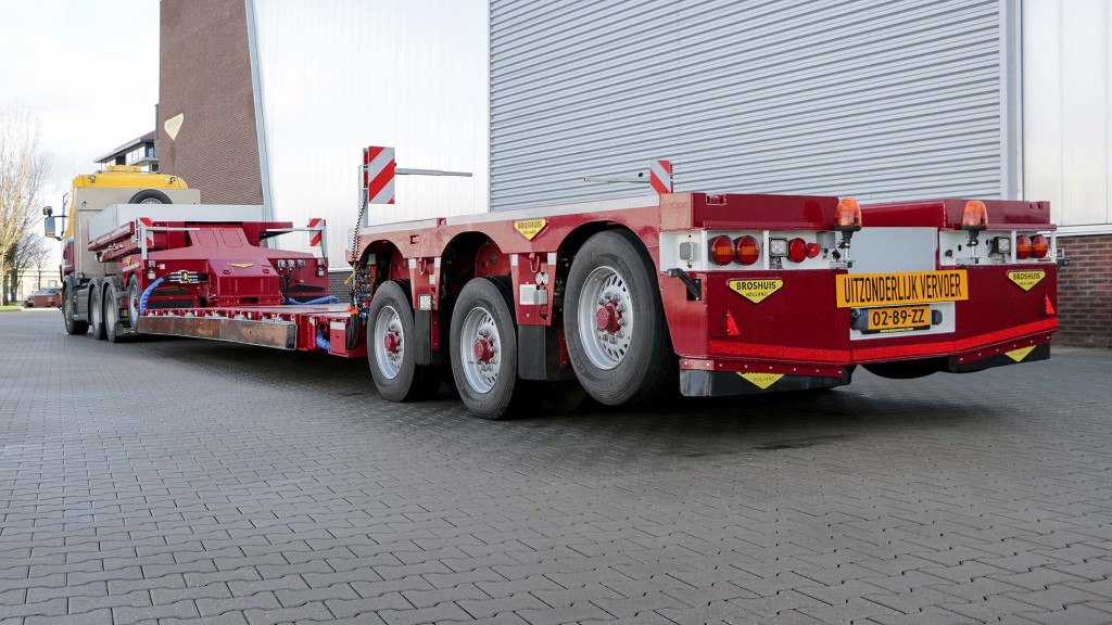 A dolly low loader combination with 1 axle at the front and 3 axles at the rear ensures an ideal weight distribution of the load. This increases the capability of this low loader.1+3 Low loader dolly combination PL2 HD