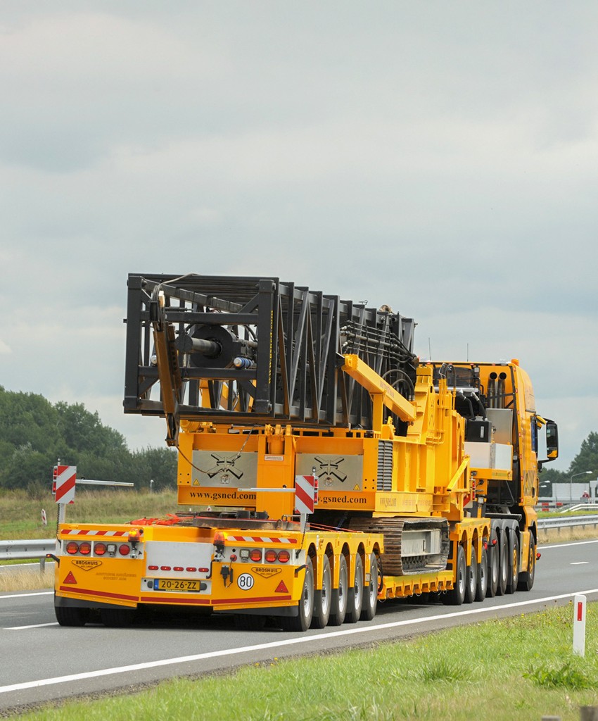 The 3 + 5 low loader dolly combination is built for the largest and heaviest machines. By our own strength calculations, we can see exactly where we can save weight without compromising on the strength of the pendulum axle. This provides the operator with a low loader that has a low tare weight, and high axle capacity. This high payload in combination with a wide crane arm recess and 600 mm stroke makes it a unique low loader. Due to the robust construction and effective corrosion protection, you have a low loader with a long service life.