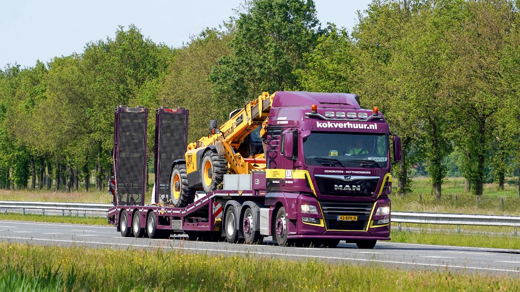 Our 3-axle forklift and aerial platform semi trailer has been developed with various transporters to arrive at the most ideal solution for the transportation of forklifts and aerial platforms. For example, this 3-axle trailer has hydraulically controlled double ramps and a pull-down bed for easy loading on the neck. You can therefore transport most machines on this trailer. This provides you with greater flexibility and you can serve your customers even better. Our forklift semi has an extra reinforcement under the checker plate loading floor. As a result, the loading floor will not deform due to frequent loading and unloading operations.