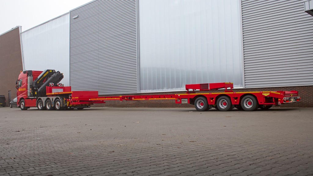 The 3-axle semi low loader is extends twice up to a maximum length of 26 meters. Thanks to the hydraulic steering, you can access difficult-to-reach locations with ease. This 3-axle version is equipped with extra spacing between the axles. This means that the trailer is plated for 10 tonne axle capacity. Other 3-axle semi low loaders only get 9 tonnes per axle. Overall, this gives you an extra 3 tonnes more payload with this semi low loader. This 3-axle trailer is built so that almost any type of load can be carried. An ideal trailer for your fleet!