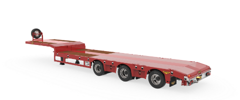 The 3-axle hydraulically steered semi low loader is the strongest of its kind. Thanks to its long lifespan, the cost per year is low.3-axle hydraulically steered semi low loader (wide spread)
