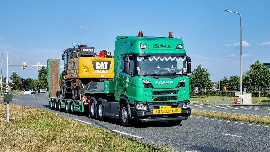 This 5-axle hydraulically steered construction semi low loader is a real all-rounder. Thanks to its low weight in combination with the 5 axles, large machines can easily be transported on this semi low loader. Because of the wheel wells between axles 2 and 3, it is possible to transport large wheeled vehicles low, safely and easily. By extending the trailer, you create an extra long wheel well that even includes support. Thanks to the crane arm recess, the trailer can easily transport machines with a long boom. The hydraulic ramps are available as an optional extra, with radio remote control, making it safer to operate the ramps from a distance. 40 ft containers, long machines and building materials can also be transported, because the trailer extends.