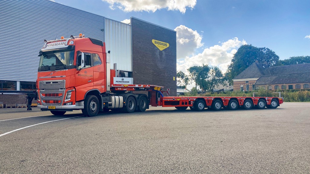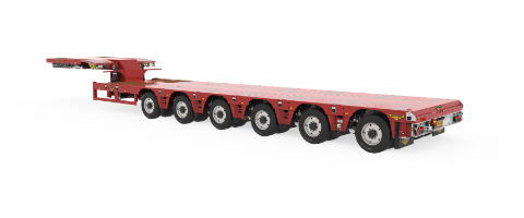 This 6-axle semi low loader has an extremely high payload due to its low weight and high axle capacity. Because the trailer is extendable, overlength cargo can also be accommodated.6-axle, pendle axle semi low loader PL2