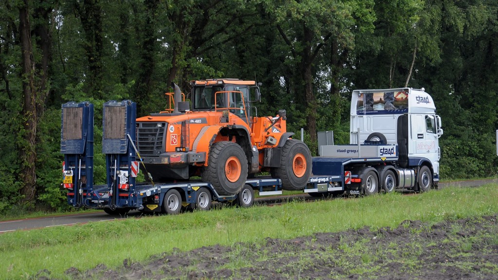 This 3-axle self-tracking construction semi low loader with hydraulic ramps is built in such a way that you can transport almost all types of construction machines. Thanks to its hydraulic ramps, loading and unloading is simple and safe. The trailer is equipped with wheel wells (extra wheel recess is created by sliding the trailer) so that the wheeled loaders can be loaded lower. This trailer also has a crane arm recess so that the boom can be transported lower.