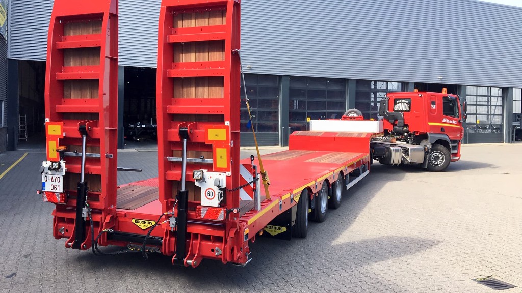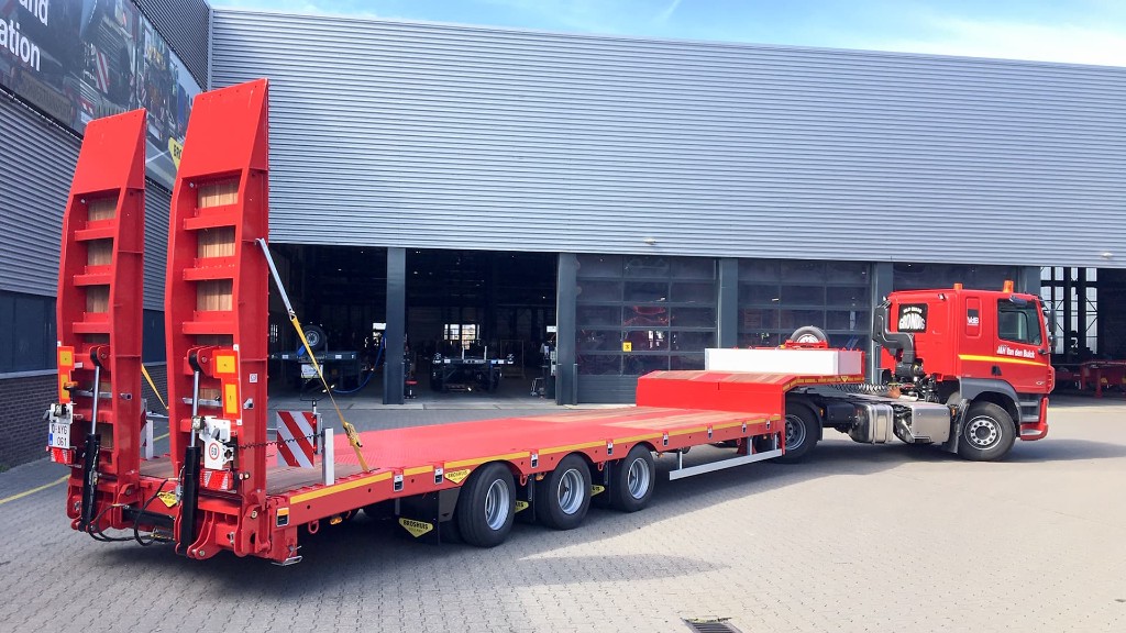 This 3-axle, self-tracking semi low loader is not extendable. This variant is equipped with double-acting hydraulic ramps. This makes it possible to load and unload wheel and tracked vehicles very efficiently, but most importantly, in safety. The trailer falls within the legal dimensions. An ideal semi-trailer to augment any fleet. This semi low-loader distinguishes itself by its high standards of manufacture and long service life. Robust construction ensures that the semi-trailer is a true all-rounder.