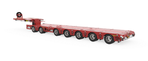 This 7-axle SL2 semi low loader with independent wheel suspension is specially designed for heavy loads. The trailer extends twice, providing increased functionality.7-axle semi low loader SL2 double-extendable