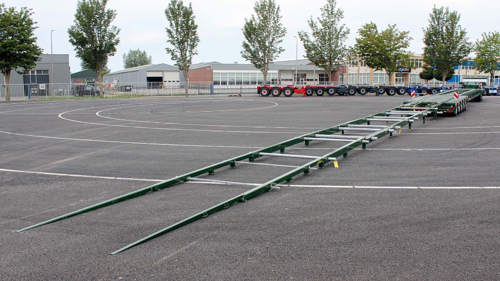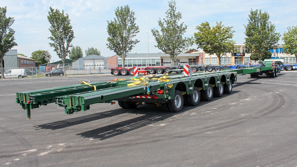 The loading floor is extremely low due to the independent wheel suspension. That is why this is the ideal solution for rail-related transport. Because the trains and trams are often long, the semi trailer can be extended twice and the first two axles remain attached to the gooseneck for ideal weight distribution. Because the SL2 trailers have a steering angle of 57º, you can still access tight locations, despite the length of the trailer.