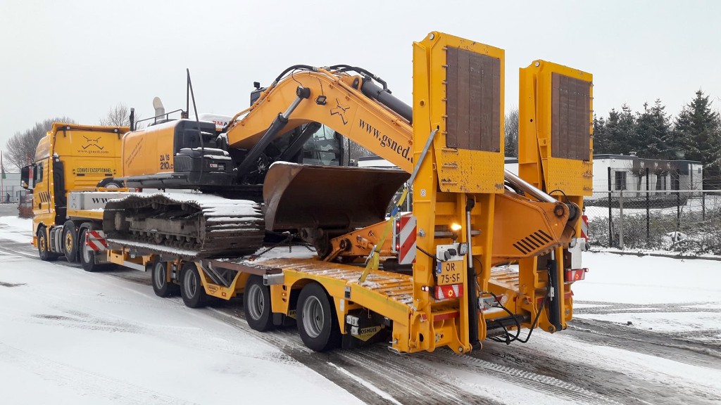 A boom trench or crane arm recess is a space in which the crane arm section can easily be placed during the transportation of a machine. This allows you to easily reduce the transport height. The recess is always made as long, wide and deep as possible. This depends on the specification of the trailer.