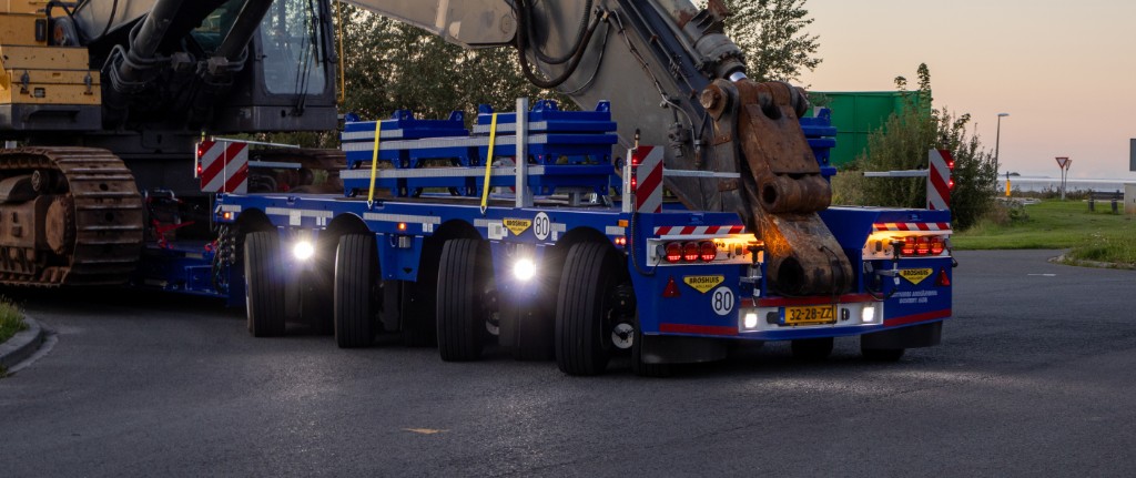 You choose a 3-axle SL2 axle bogie because of its low tare weight and the fact that transports usually take place on public roads. This axle bogie is extremely low, which allows the load to protrude from the bed over the axle bogie and makes extending unnecessary. Moreover, the SL2 axle bogie has a full-length crane arm recess.